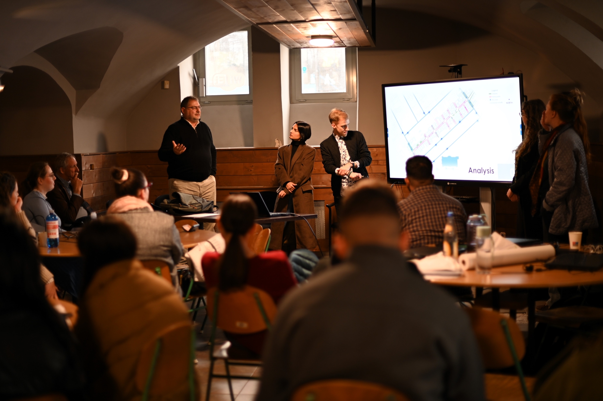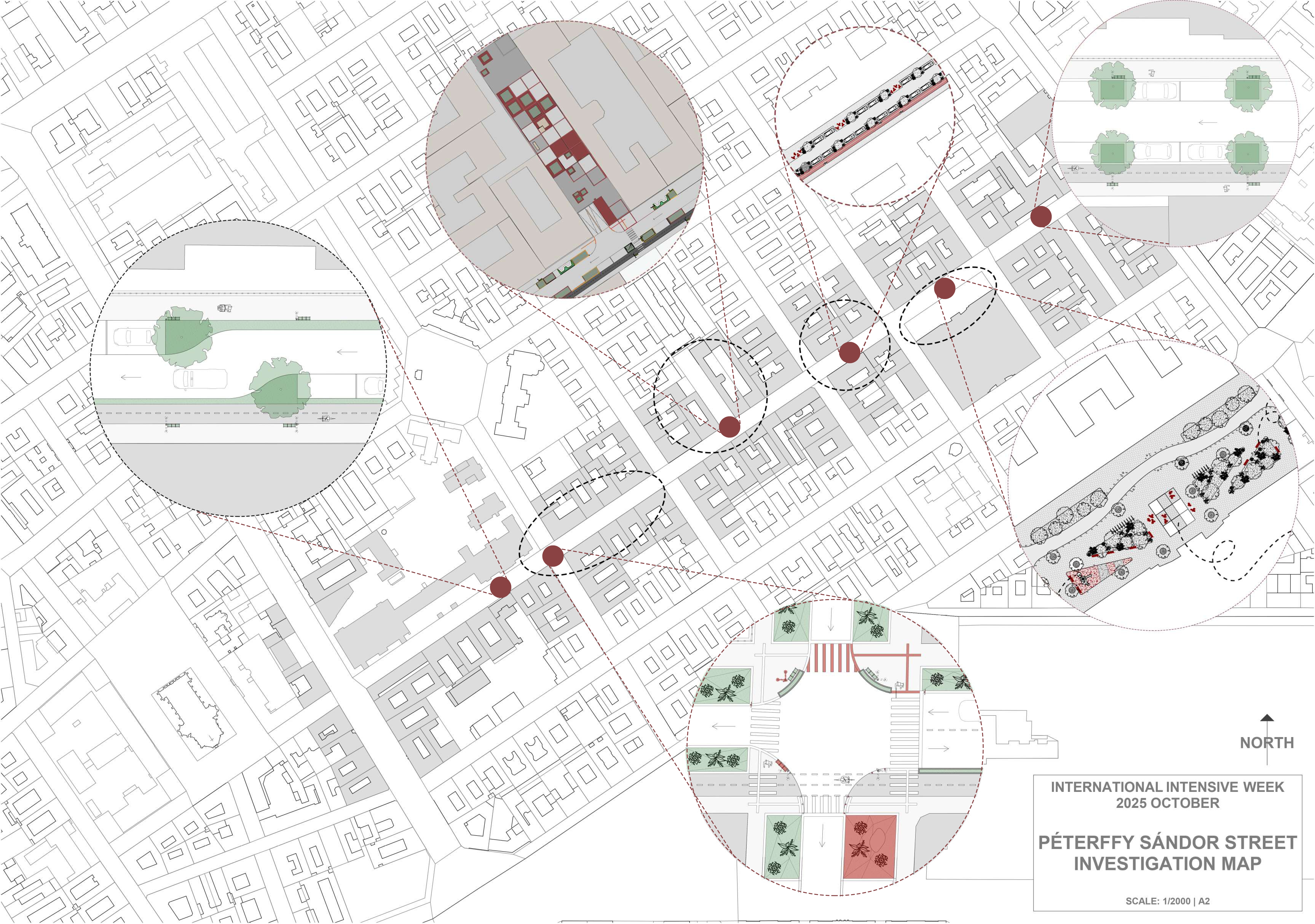 Program 1: Az MSc kétéves programja mind a magyar, mind az angol nyelvű kurzuson egy olyan egy hetes intenzív héttel kezdődik, amelynek célja egyrészt a városi közeg, városi lépték becsempészése a hallgatók építészeti tárházába, másrészt a terepgyakorlatok által a hét kiváló csapatépítő programként is működik; a hallgatók egy viszonylag rövid idő alatt ’sülve-főve’ együtt vannak, hogy a hét végére egy értékelhető munkát tegyenek le az asztalra - nem volt ez másképp 2025 őszén sem. Ez a Város- és közösségi tervezés egy hetes programmá összezsugorított tárgya, ami elindítja az ezt követő három félév komplex tervezését. Ennek a tárgynak a keretében általában egy olyan települési/beépítési problémával hozzuk össze a hallgatókat, aminek a városi és a közösségi aspektusaival (is) szembesülve kell építészeti, urbanisztikai választ adni a tervezési félévek során. Ilyen volt pl. a tatai és XV. kerületi lakóterületek co-housing vezérelte beépítésének valamint házainak megtervezése.
