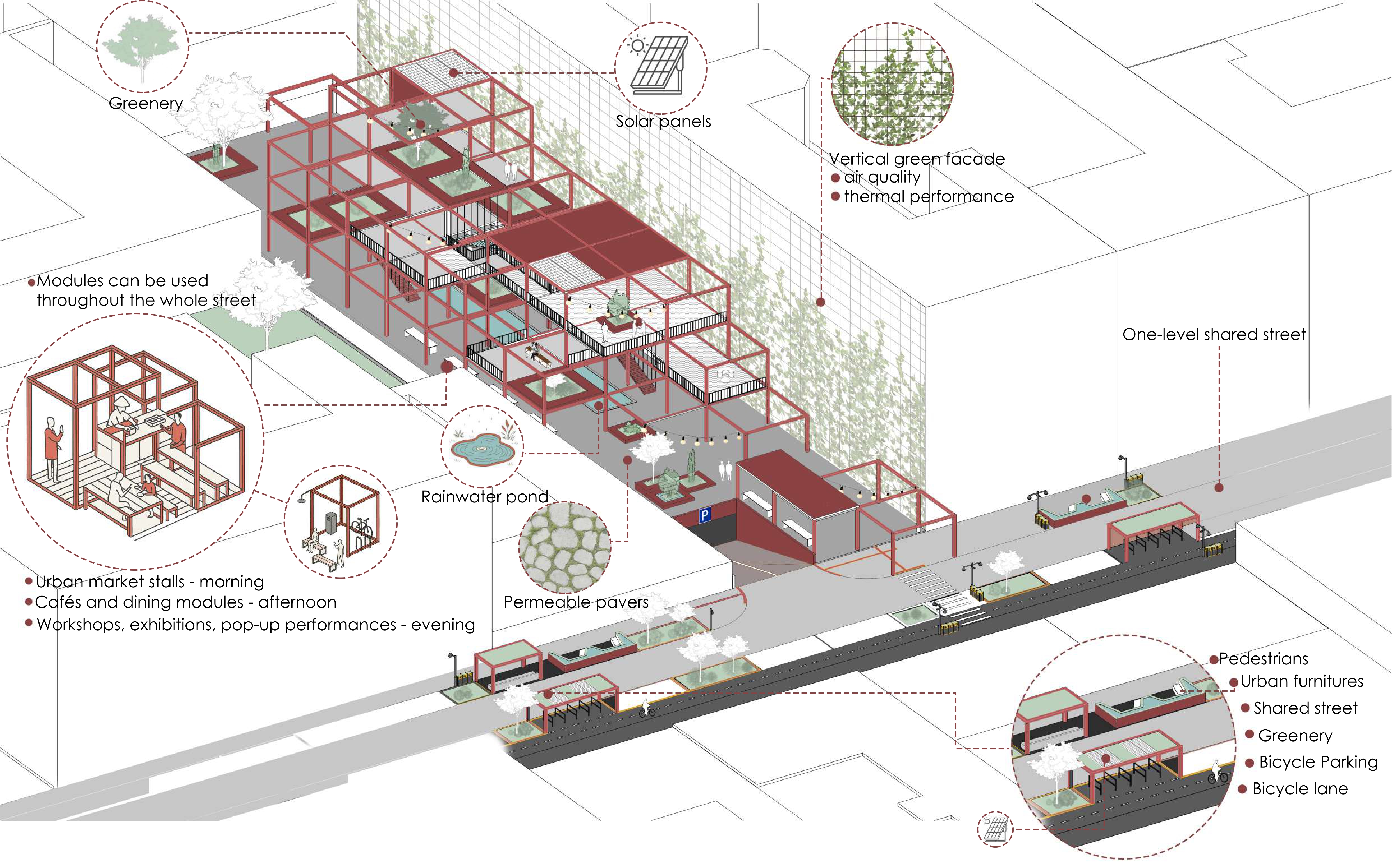 Ennek a három programnak az összevonása eredményezte azt, hogy végül 11 ybl-ös építész hallgató és 4 külföldi egyetem 12 diákja négy csoportra osztva dolgozott két budapesti helyszínen. A feladat a Blaha Lujza tér, valamint a Péterffy Sándor utca át- és megtervezése fenttarthatósági szempontok alapján. Ennek során lehetőség volt olyan közösségi programok megteremtésére, mint a Péterffy Sándor utca földszintjeik bevonása a közösségi funkciók körébe (új kisebb üzletek, kávézók nyitása, vagy közösségi kertek kialakítása), közlekedési javaslatok beemelése (a parkolófelületek visszaadása a gyalogosok számára, vagy a Rákóczi úti villamos visszaállítása) és környezetalakítási városépítészeti megoldások, mint a zöldfelületek, árnyékolók növelése, vízfelületek kialakítása, vízáteresztő burkolatok alkalmazása, stb.