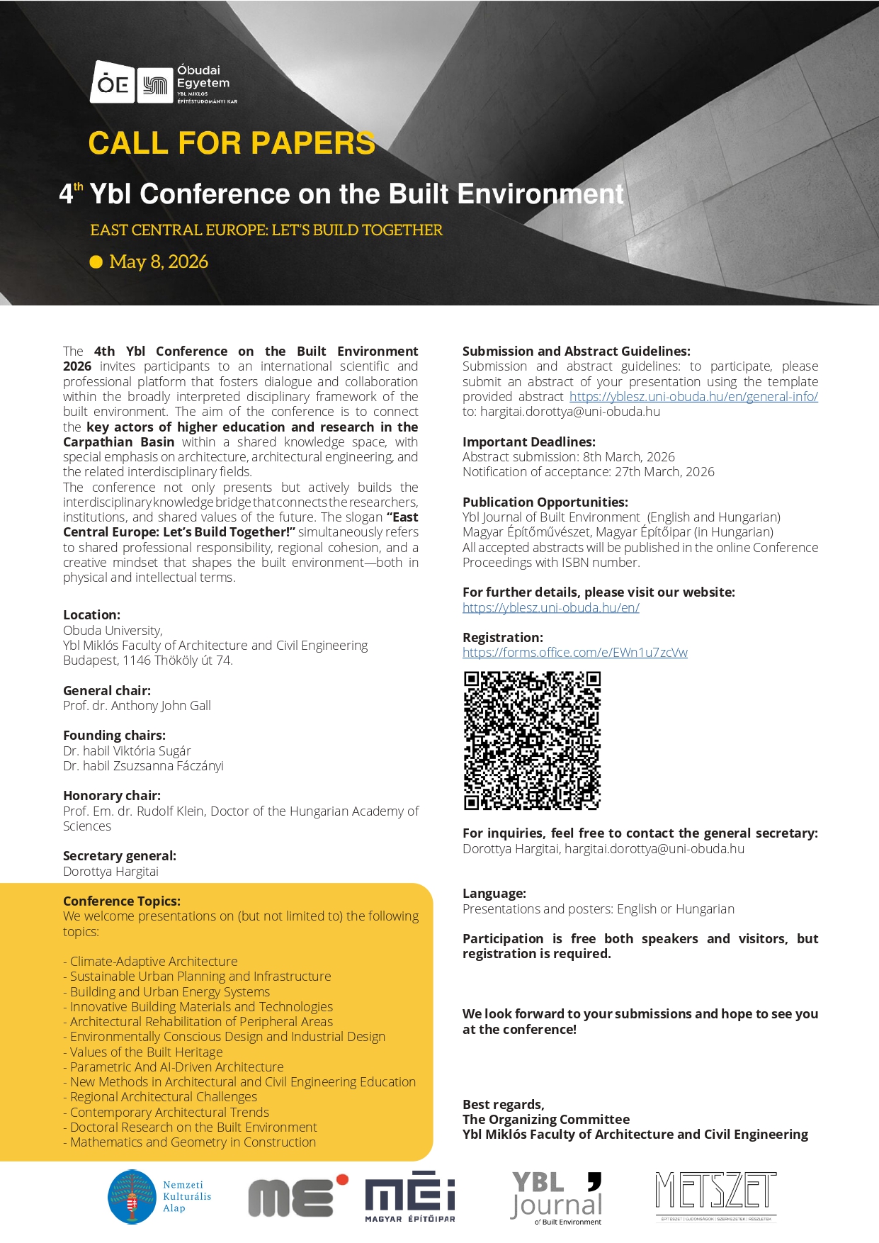 For inquiries, feel free to contact the general secretary: Hargitai Dorottya hargitai.dorottya@uni-obuda.hu