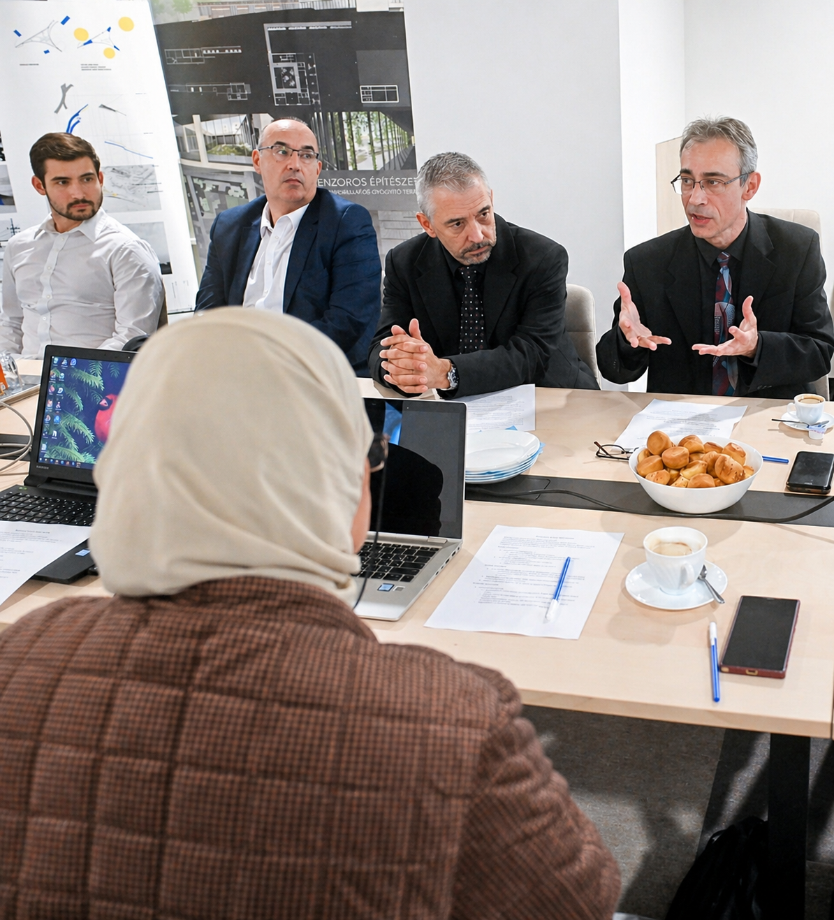 Beyond the meeting, our guests received guided tours in the labs of the Institute of Civil Engineering and the studios of the Institute of Architecture, and also delivered academic presentations reflecting their respective major fields of research to an audience of staff members and students of the faculty.