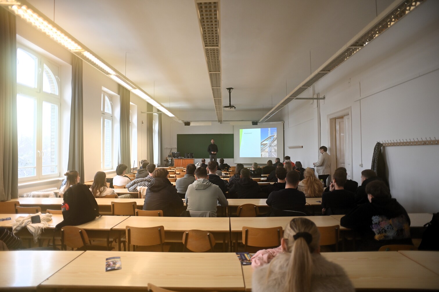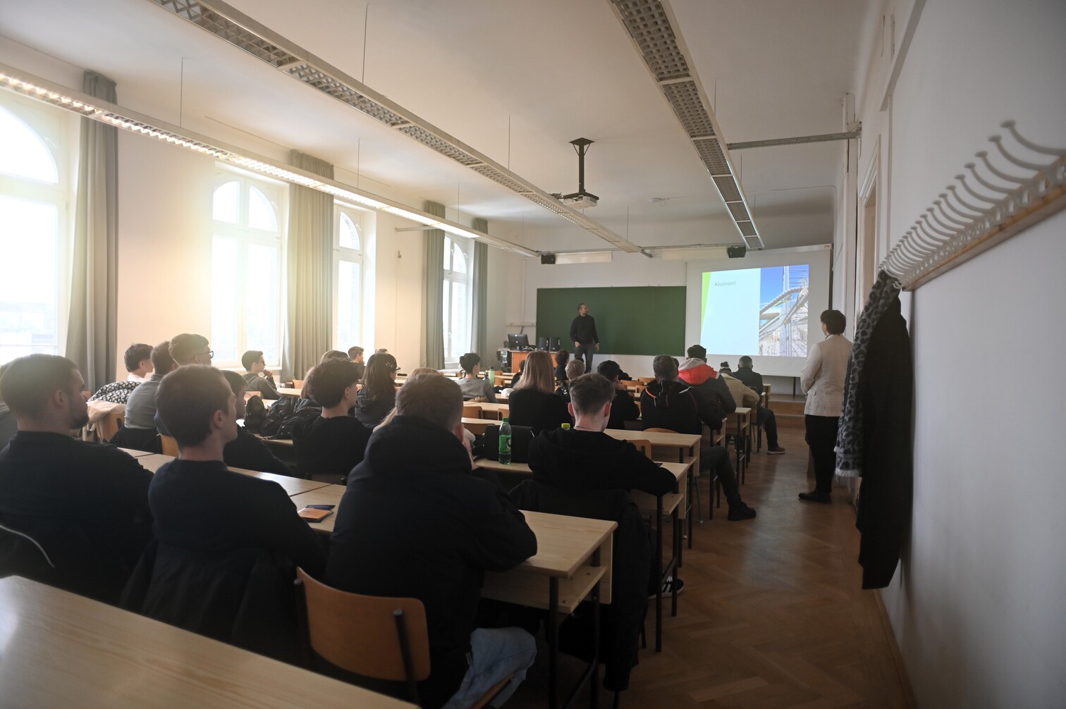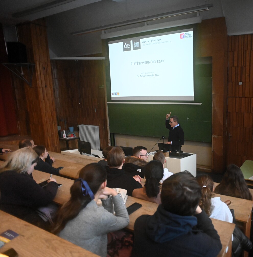 Délután a nyílt nap programja 12:30-kor folytatódott, egyszerre két helyszínen, így a résztvevők több területbe is betekintést nyerhettek. A Nagyelőadóban az építészmérnök szak került fókuszba: az érdeklődők megismerhették a műhelymunkák világát, majd részletes tájékoztatást kaptak a rajz alkalmassági vizsgáról és a Hallgatói Önkormányzat sokrétű tevékenységéről is.