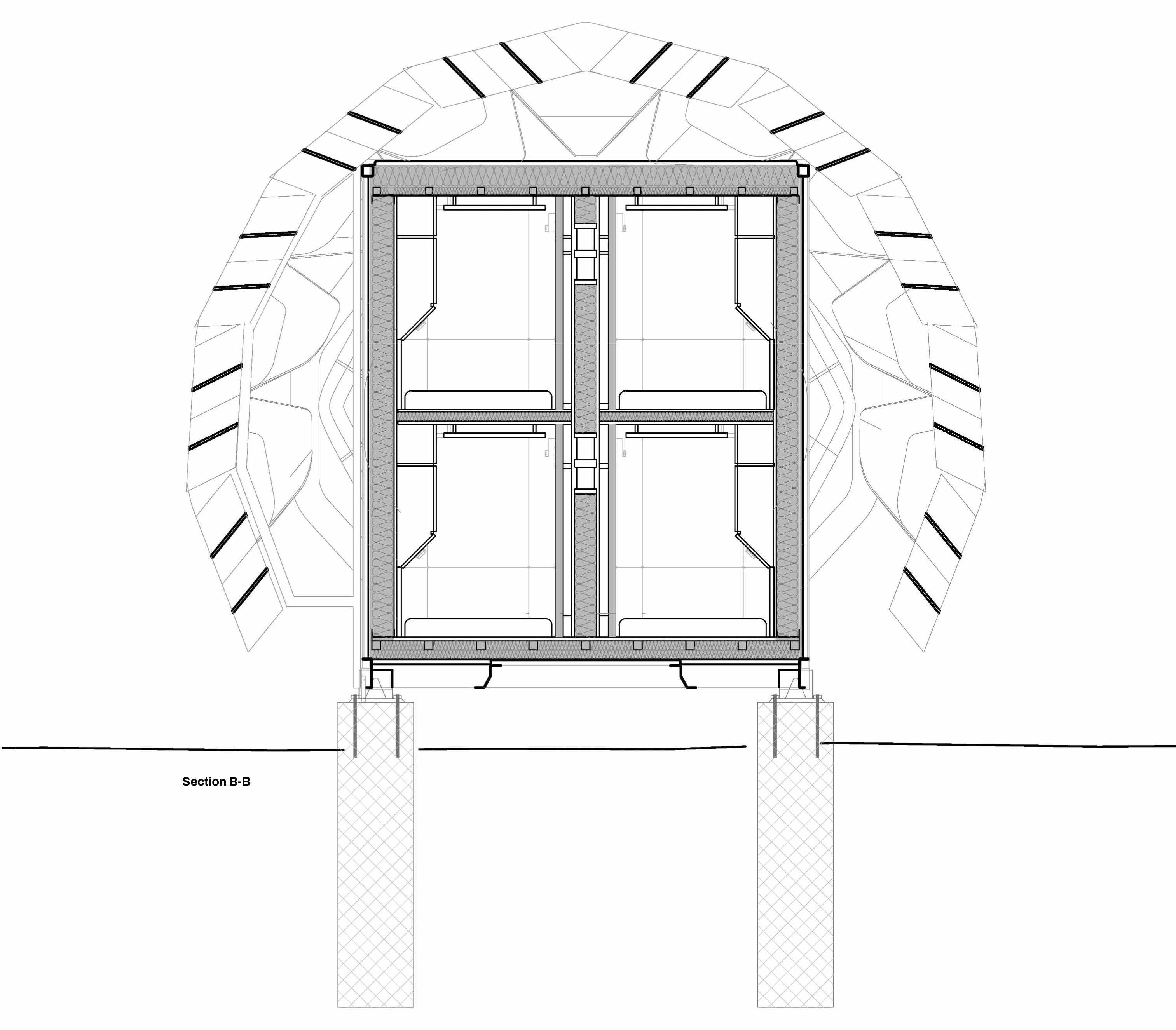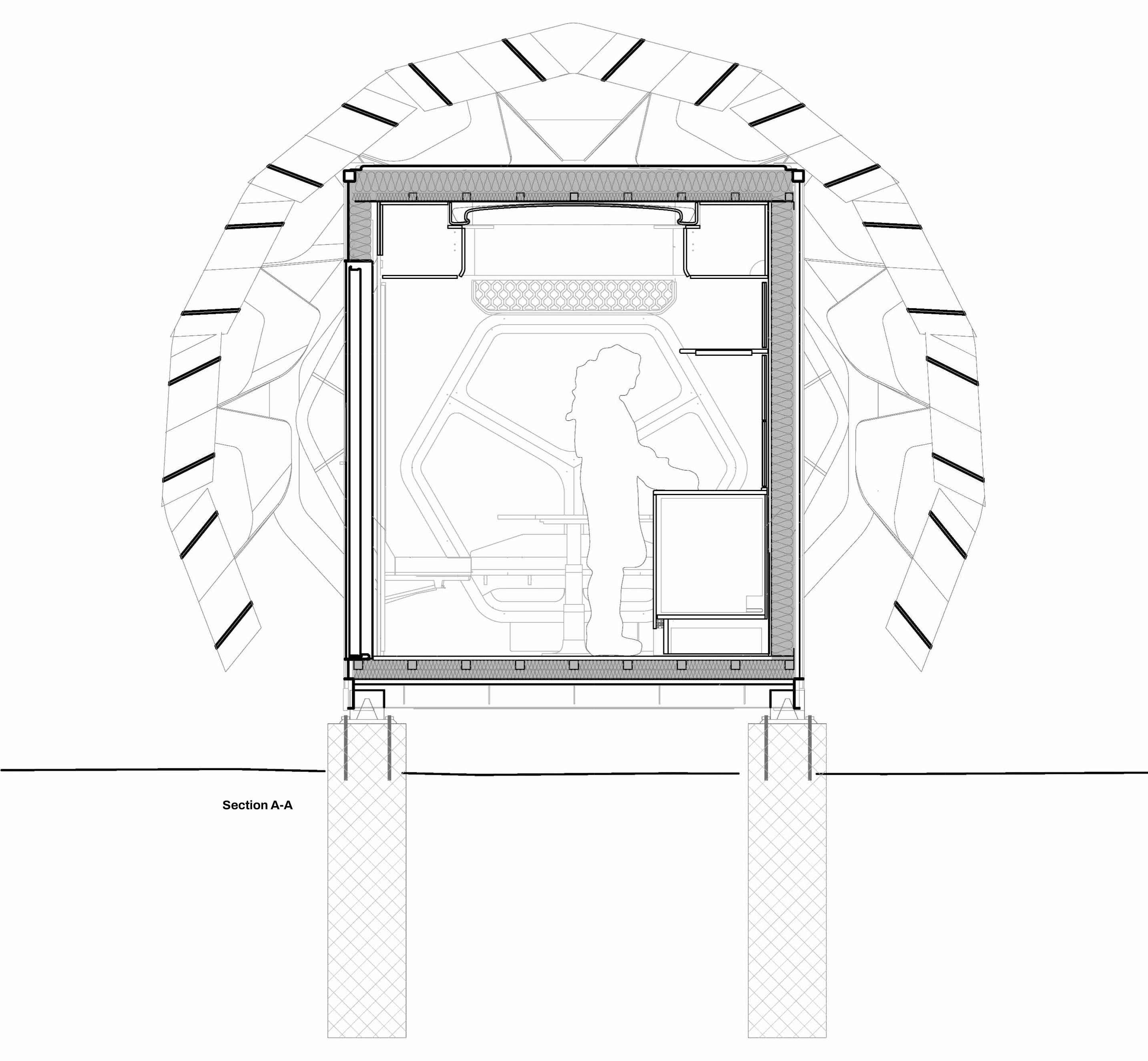 A dokumentumban szereplő koncepció: moduláris lakóegységek regolitborítással.
