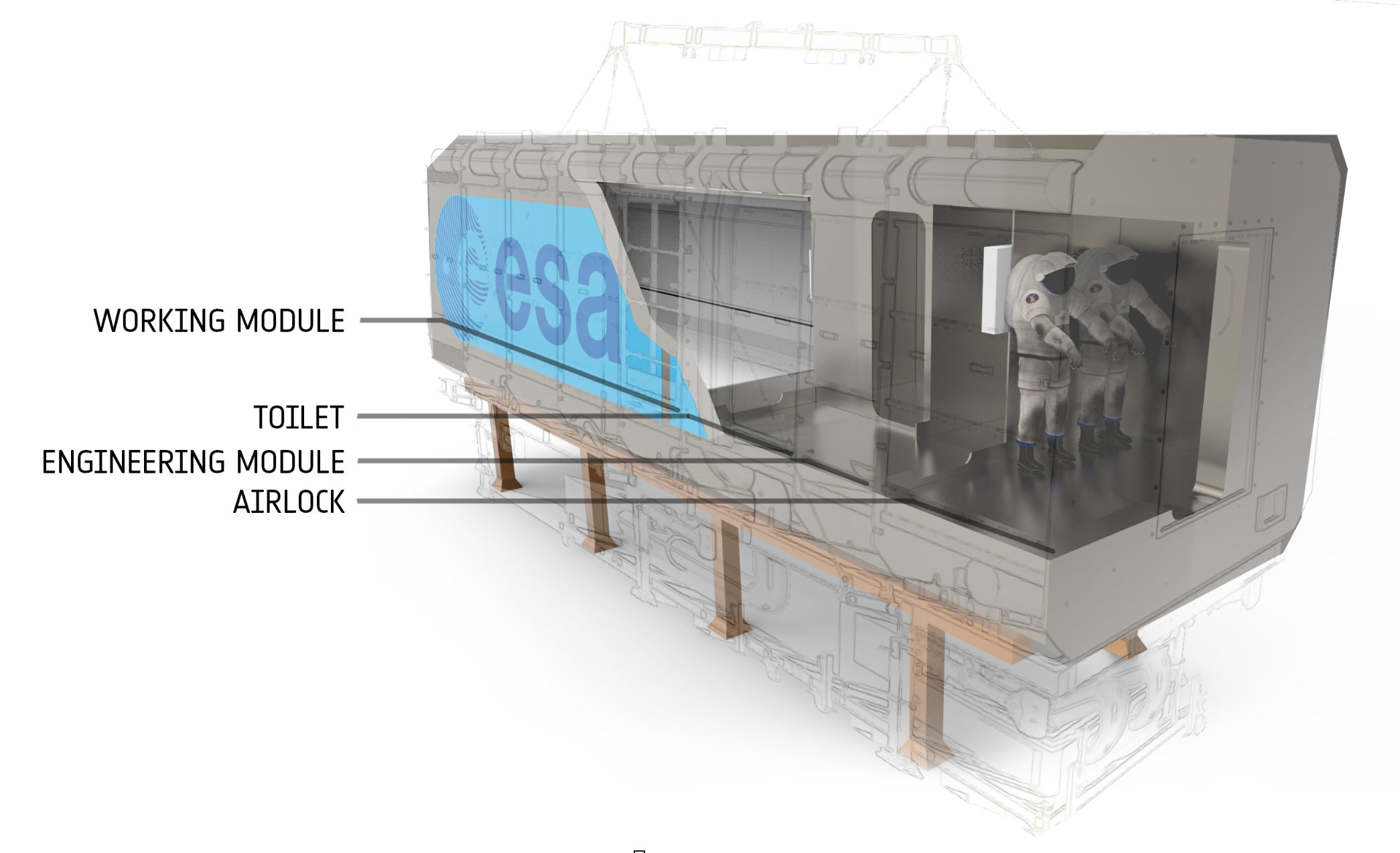 A LUNA mellett 2026-ban a legfontosabb fejlesztés a FLEXHab, az ESA új, moduláris lakóegysége, amely közvetlenül kapcsolódik a szimulált holdfelszínhez. A kutatók itt izolációban élnek, miközben a „kinti holdporsivatagban” dolgoznak. A modul belseje meglepően otthonos: meleg fények, vertikális kertek, kapszulaszerű hálófülkék és ergonomikus munkállomások segítik a hosszú távú tartózkodást.
