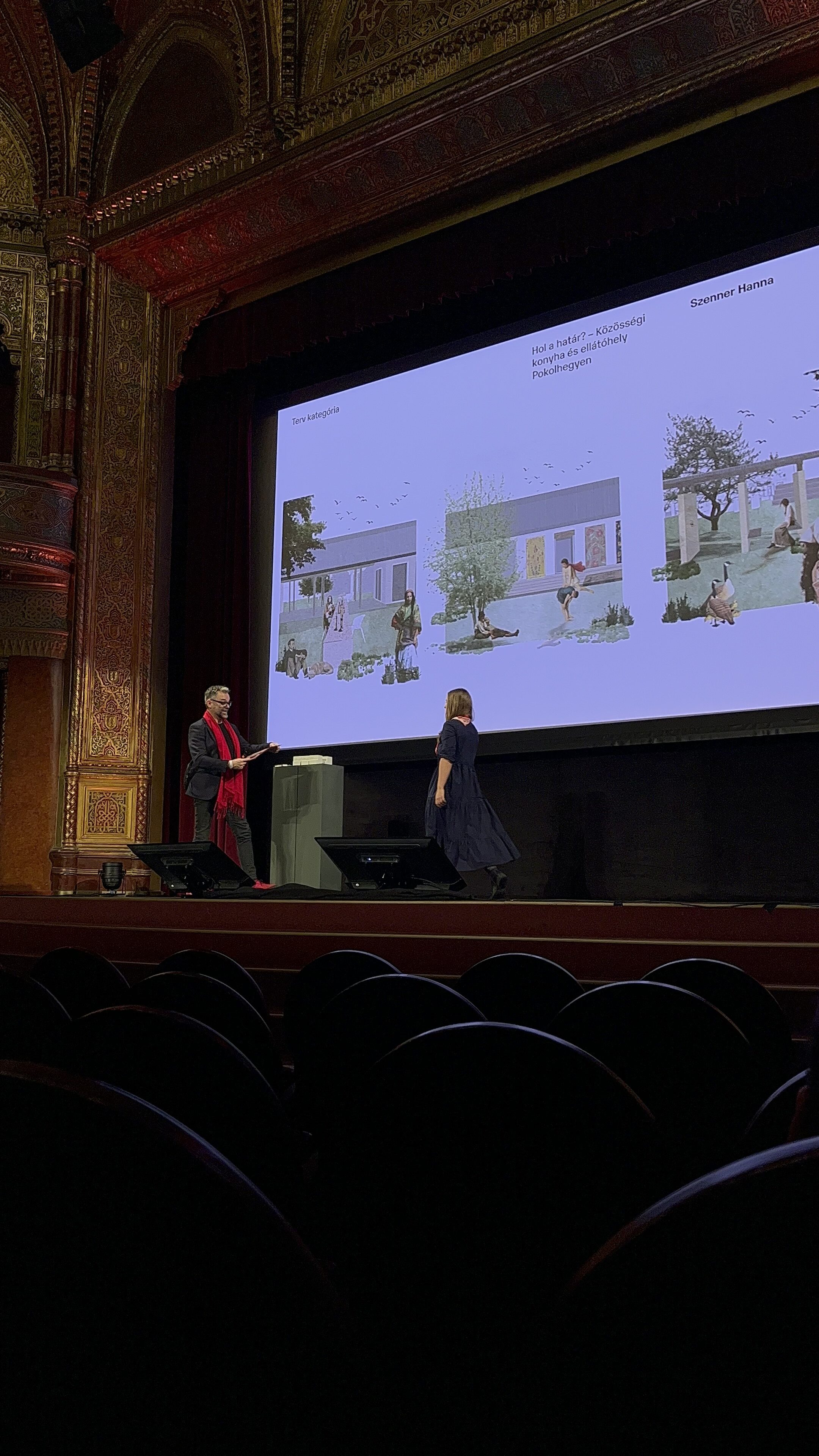 Karunk mesterszakos hallgatója, Szenner Hanna nyerte meg a „Hol a határ? – Közösségi konyha és ellátóhely Pokolhegyen” című mesterdiplomamunkájával (témavezető: Prof. Dr. Csontos Györgyi DLA) az Építészfórum által alapított, 21. Média Építészeti Díja közönségszavazását. Hanna diplomamunkája Ráckeve szegregált településrészére, Pokolhegyre fókuszál. Arra a kérdésre keresi a választ, hogyan hozható létre egy új építészeti funkció úgy, hogy az természetesen simuljon bele a helyi közösség életébe, ne csupán külső beavatkozásként jelenjen meg. A közösségi konyha és ellátóhely koncepciója nemcsak praktikus válaszokat keres, hanem társadalmi kapcsolatokat is újraszövi, lehetőséget teremtve a párbeszédre a telep és a város többi része között.