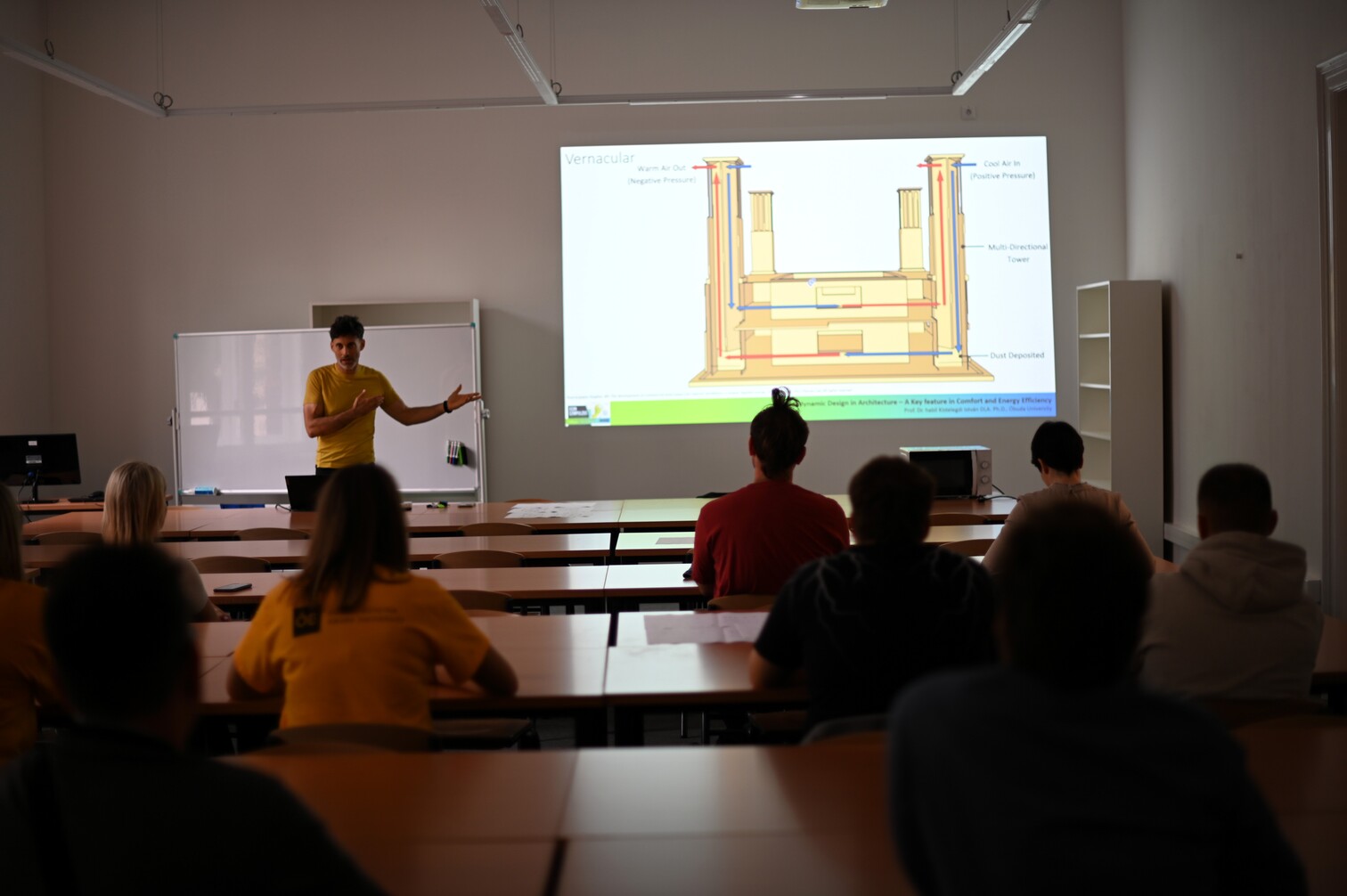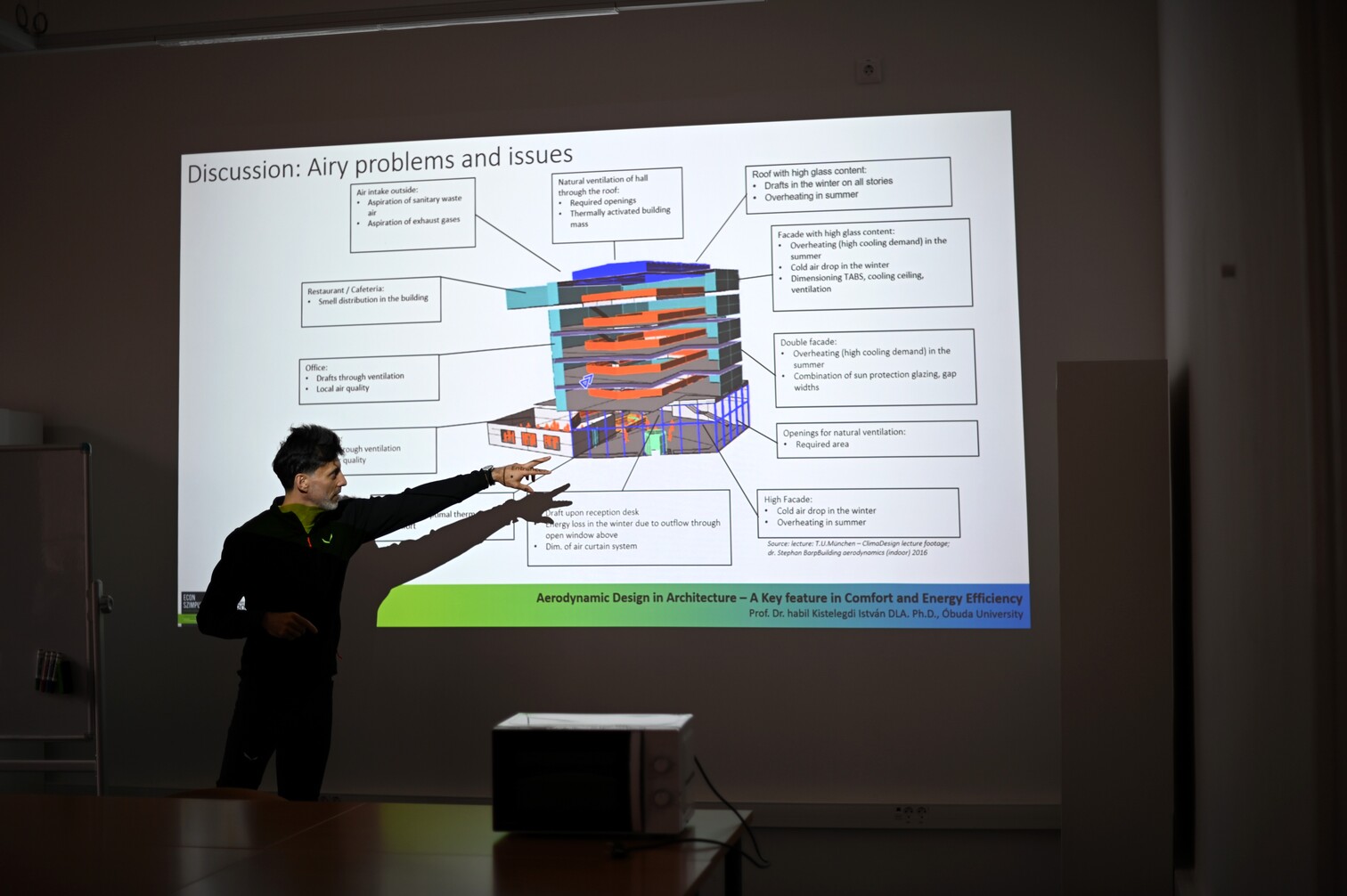 Az előadások sorát Prof. Dr. habil. Kistelegdi István kezdte, aki a fenntartható építészet újragondolására tett kísérletet. Őt követve, Dr. Vizi Gergely Norbert próbálta megcáfolni vagy éppen megerősíteni a lakásban felelhető elektromágneses terekkel kapcsolatos aggodalmainkat. Botzheim Bálint pedig sokak gyerekkori álmát valóra váltva, megmutatta, hogyan lehetne házat tervezni a Holdra.