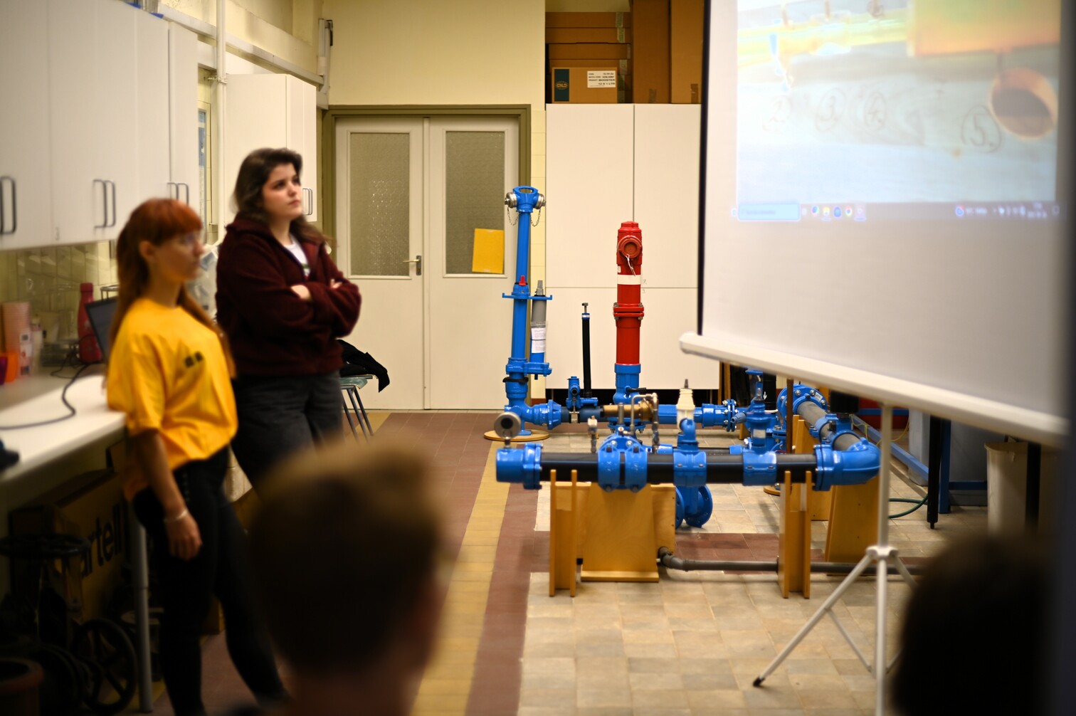 A vállalkozó kedvű látogatók Kaczvinszki-Szabó Vera és Firgi Tibor vezetésével beleshettek a Talajmechanikai és vízkémiai laboratórium kulisszái mögé, Dr. Rőczey Levente, Rozinka Zsuzsanna, illetve Mezei Zsuzsanna kalauzolásával pedig az Áramlástani laboratóriumba tehettek látogatást.