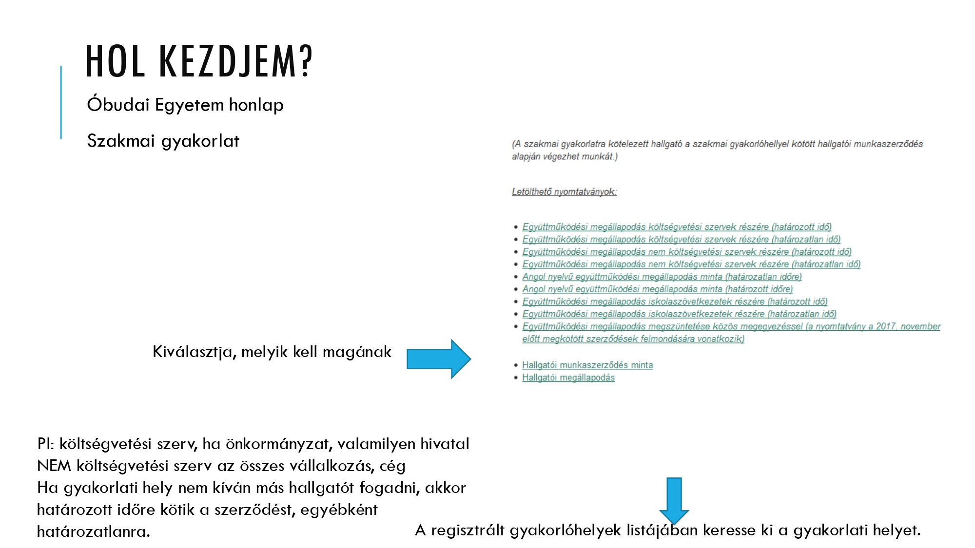 Ha nem találja a listában a gyakorló helyet: akkor kinyomtatja az egész szerződést,