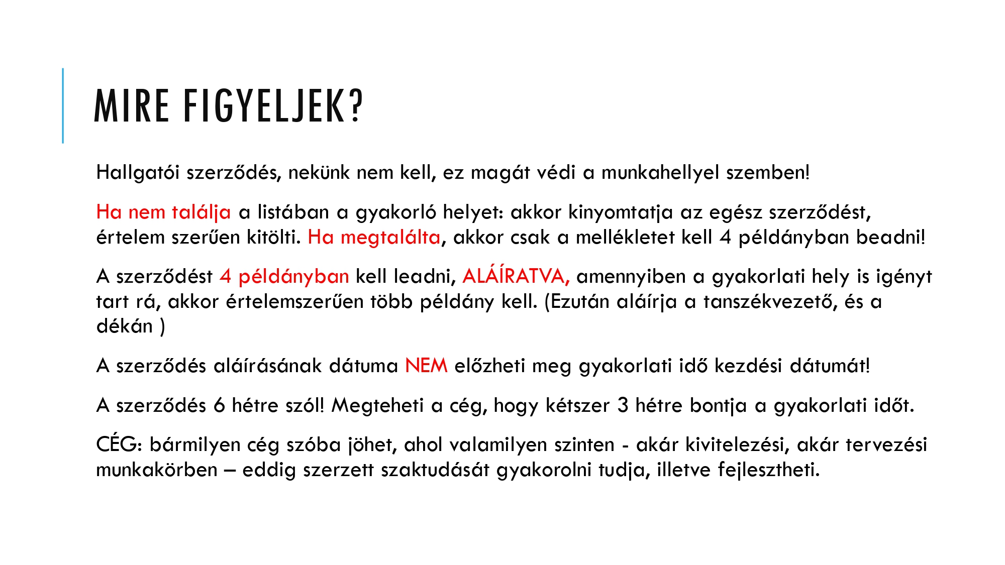 A szerződést 4 példányban kell leadni, ALÁÍRATVA, amennyiben a gyakorlati hely is igényt
