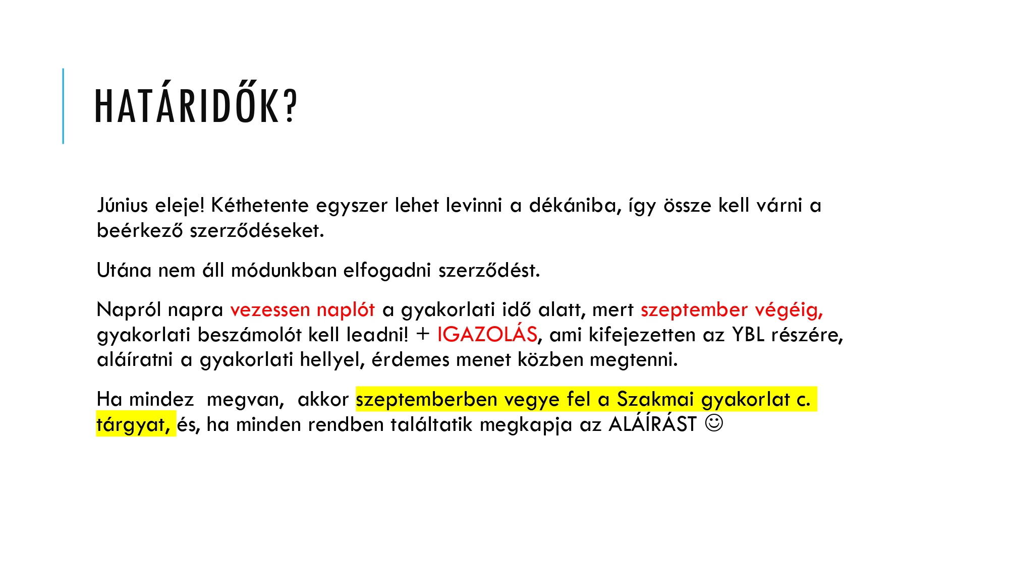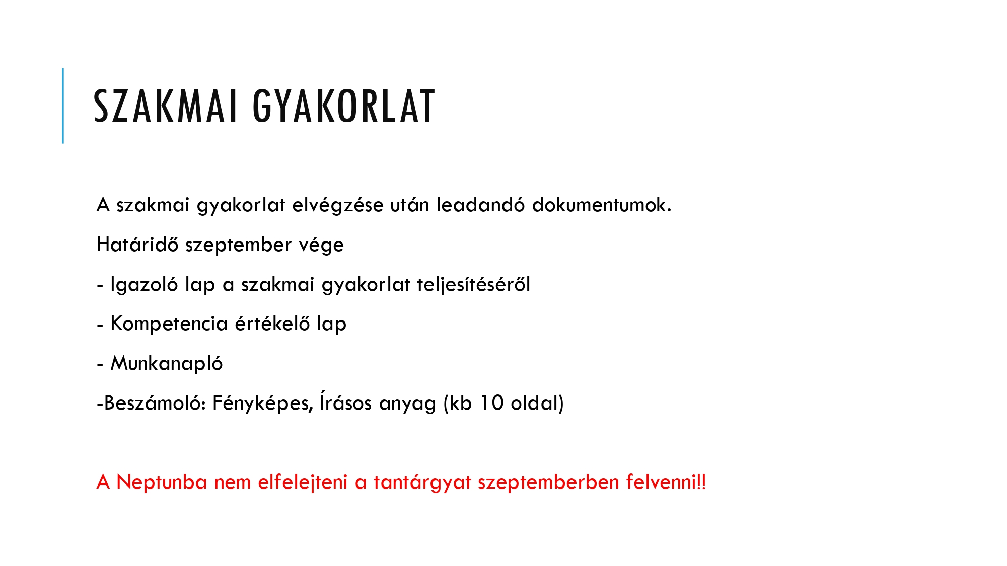 Ha mindez megvan, akkor szeptemberben vegye fel a Szakmai gyakorlat c.