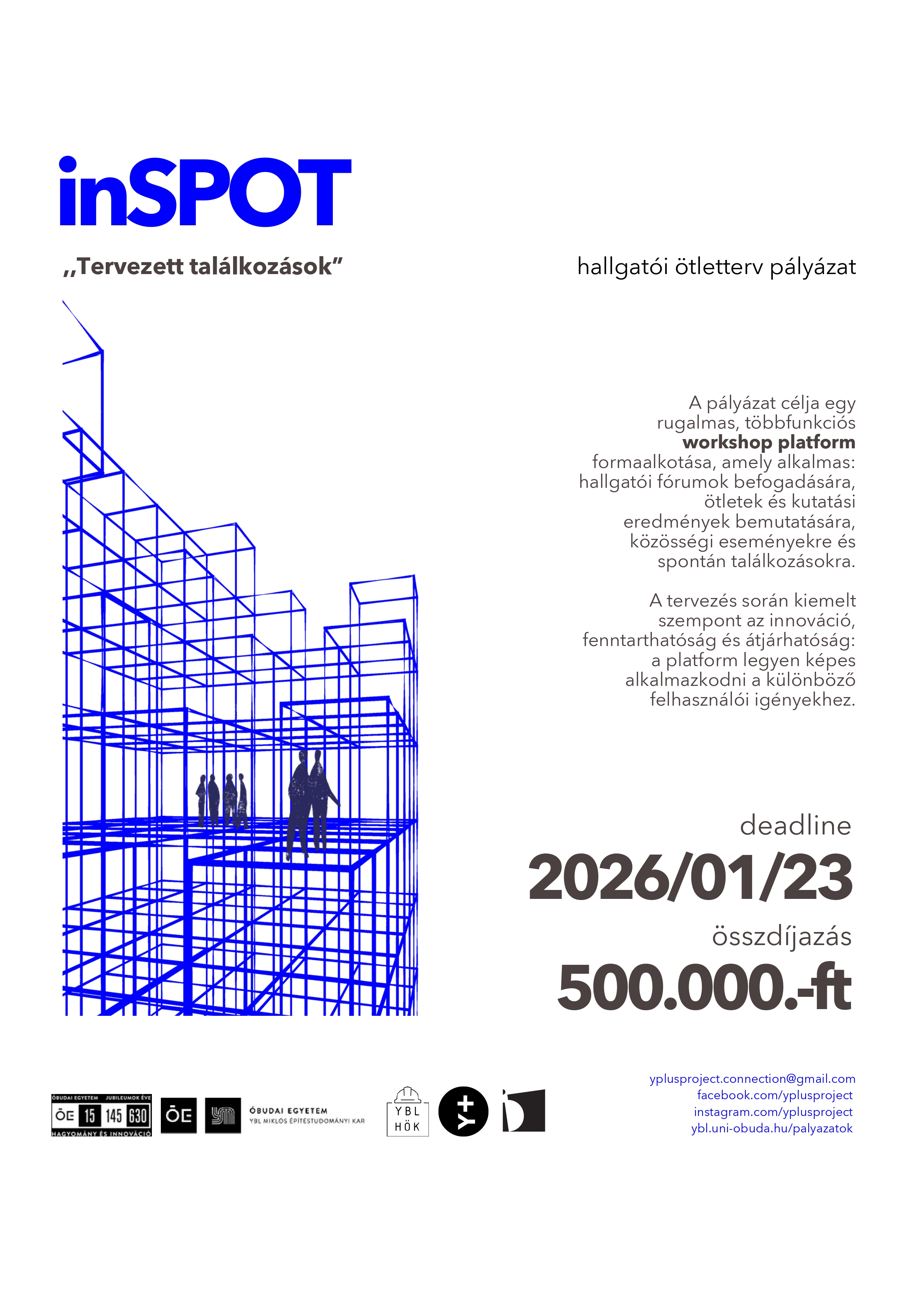 "Tervezett találkozások" - Az Y+ Project - az ÓE YMÉK MDK rendszerébe illeszkedően - az őszi szemeszterben egy Ybl - és a pályázati kiírásba foglalt más Karok - hallgatói számára nyílt, titkos ötletpályázatot ír ki. Az Y+ Project mottója a 202526 tanévben: “LOCAL ROOTS – GLOBAL CONNECTIONS”